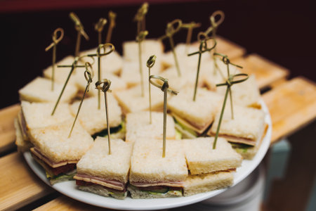 Mini Club Sandwich with chicken beacon ham, Egg Salad Cold Cuts Brioche Sandwiches for Catering, Seminar, Coffee Break, Breakfast, Lunch, Dinner, Buffet and meeting Group