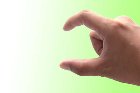 Male hand measuring or holding invisible item, mans palm making gesture while showing small amount of something on black isolated background
