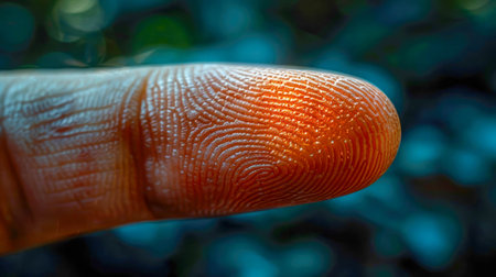 Close up fingerprint biometric identity in forensic concept.