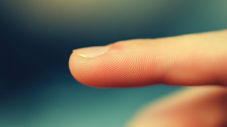 This close-up view reveals a full human finger with a distinct fingerprint featuring unique whorls and ridges in sharp detail.