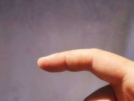 Child's hand shows gesture. Child's fingers. Hand on gray background.
