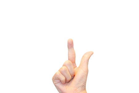 Communication using hand language and finger gestures. Sign with index finger pointing up