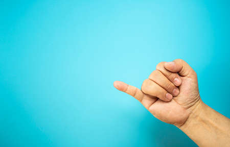 Hand with many actions meaning on the blue background, this action can let the message to another people to know what is it.