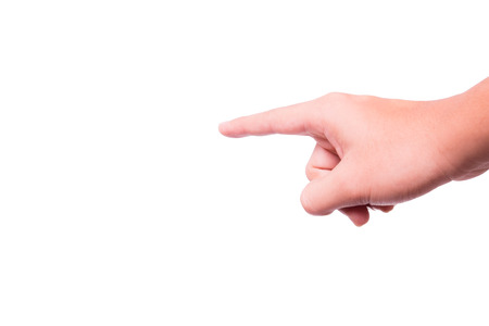 Boy hand showing number one gesture symbol isolated on white background. Gesturing number 1. Number one in sign language. counting down One concept. One fingers up. man hand sign victory gesture.