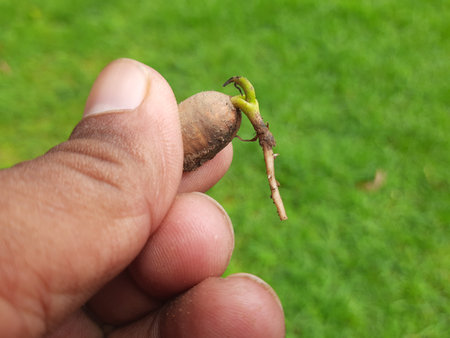 This captivating image depicts a hand holding a glowing light bulb with roots extending from the hand and delving into the earth below The symbolism is clear ideas and innovations are grounded in our