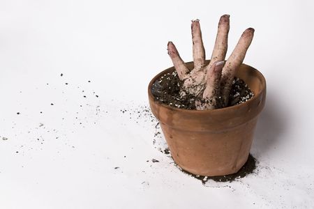Close up image of desperate hand reaching up in black and white monochrome, grunge style