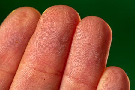 Contour line on finger in macro detail.