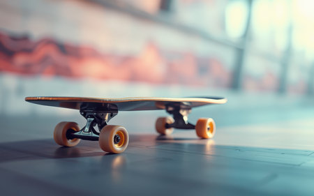 A colorful skateboard sits on a meticulously designed ramp, showcasing the vibrant essence of urban sports and the exhilarating lifestyle of skating enthusiasts.