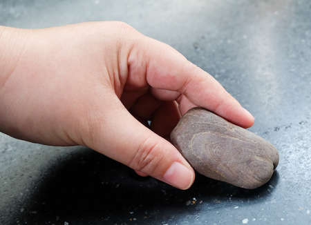 Ecology and Environment Concept, Hand Holding Carefully A Brown Pebble Stone.