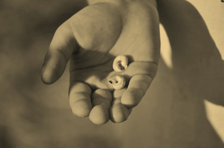 hand of child with a black little tadpole