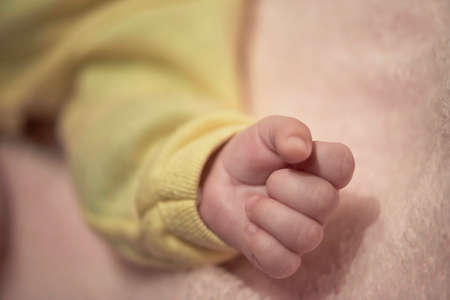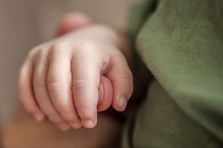 hand of a newborn baby close up. folds baby hand