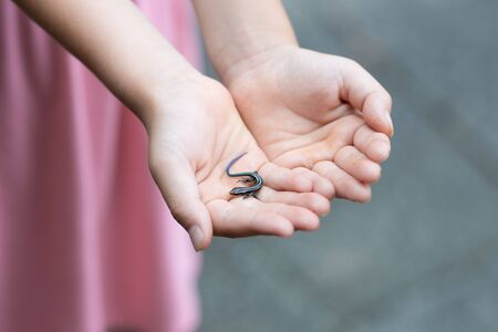 Small lizard on a child's hand