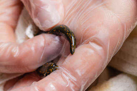 The sea worm on the man palm