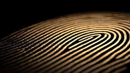 Fingerprint showing the unique dermal ridges of a human finger, representing personal identification, biometrics, security, crime evidence, and individual privacy