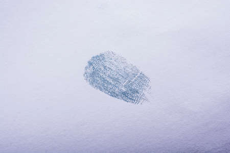 A closeup shot of a blue fingerprint on a white background
