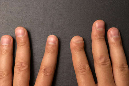 fingers of a young man on a black background. index finger after surgery, no part of the fingers