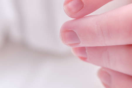Fingers on the hand of a newborn child, close-up. Macro photo of a healthy finger on the baby hand