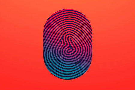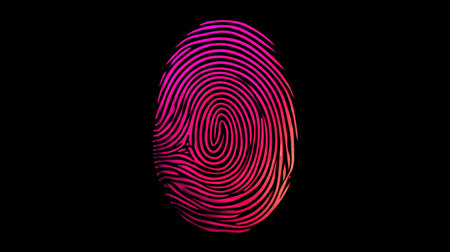 Fingerprint security scanning on a digital interface. Biometric prints. Bright colors.