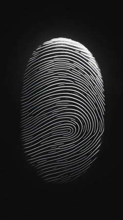 A Minimalist fingerprint pattern on dark background, showcasing intricate lines