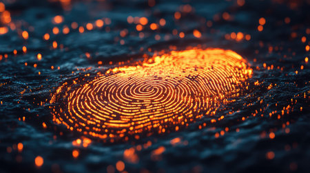 Cuttingedgebiometricfingerprintdepictsenhanceddigitalsecurityandfuturisticauthentication. Concept Biometric Security, Fingerprint Technology, Digital Authentication, Cutting-Edge Technology