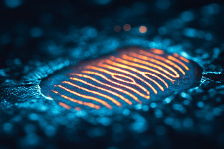 Close-up of fingerprint with light reflections, biometric security concept