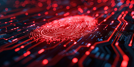 Digital fingerprints shine brightly against a black backdrop, emphasizing the importance of biometric security measures in modern technology.
