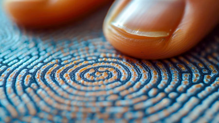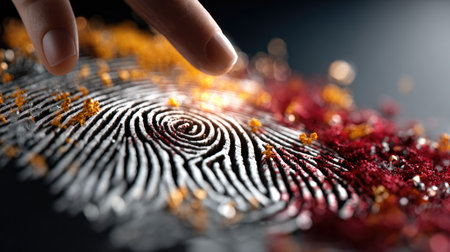 This high-resolution image captures a close-up of a fingerprint on a futuristic surface, emphasizing themes of security, identity verification, and technological innovation.