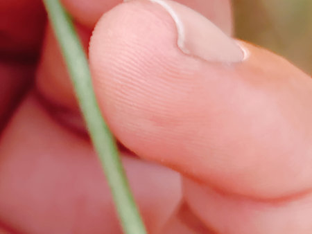 Close-up of a woman's hand holding a twig of grass