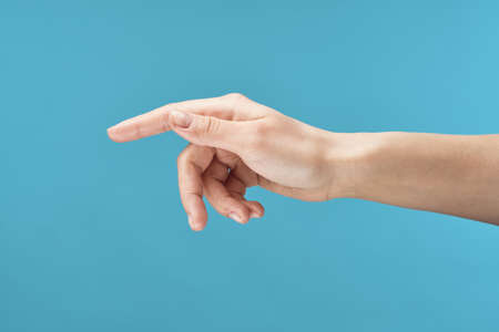 Woman hand isolated on white background showing hand gestures