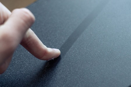 A person's finger gently glides across a laptop's touchpad, navigating the digital world with precision.