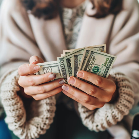 Generative AI : human hands holding money dollars 100 US dollar banknote isolated on white background