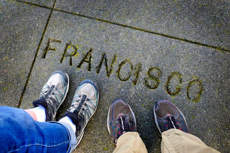 Two white sneakers on asphalt and start concept for business planning, strategy and challenge or career path, opportunity and change.