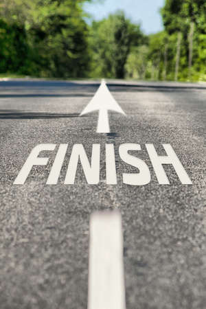 Conceptual Image of Road With the Word Finish. Asphalt road with road markings and FINISH word. Direction to the finish