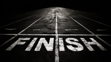 A textured road finish line highlighted with bold black lettering, Motivation