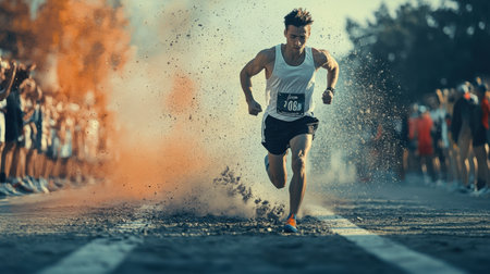 Generative AI Image of a Man Reaching the Finish Line in a Marathon Competition