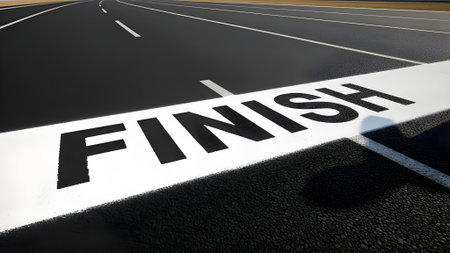 A textured road finish line highlighted with bold black lettering, Motivation