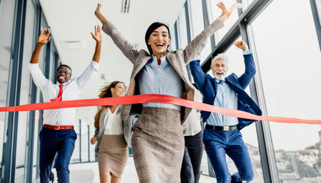 business people meeting office teamwork group fun competition sports race break winner , generated by AI. High quality photo