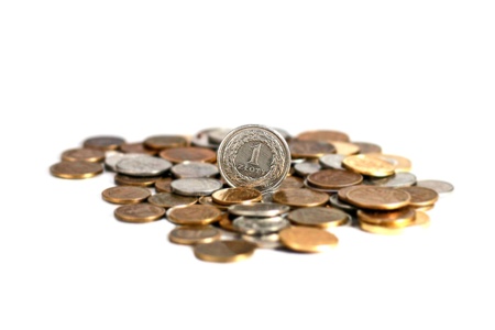 Croatian kuna and coins lipa in the hands of a woman on a white background.