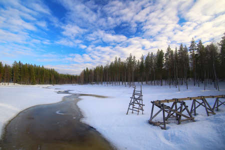 Small frozen river at Rortrask in Swedish Lapland.