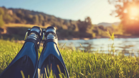 Explore the joy of snorkeling with gear resting by the water's edge during a stunning sunset. Enjoy nature