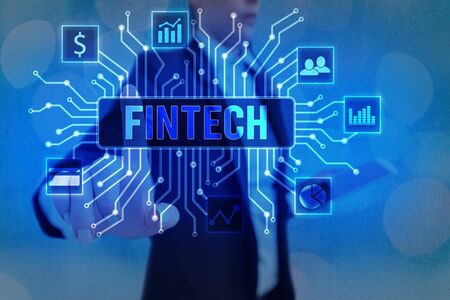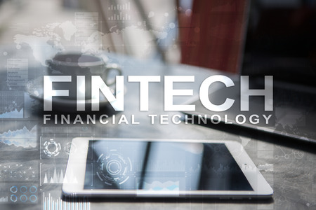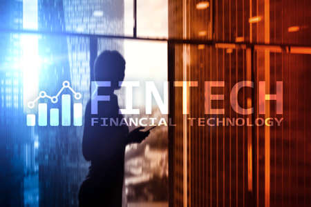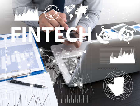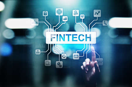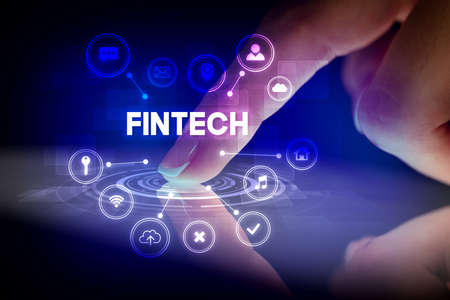 Fintech. Financial technology text on virtual screen. Business, internet and technology concept.