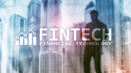FINTECH - Financial technology, global business and information Internet communication technology. Skyscrapers background. Hi-tech business concept