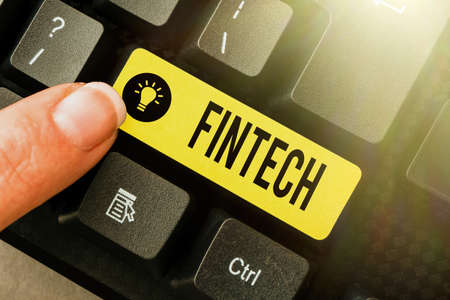Text sign showing Fintech. Word for computer programs and other technology supporting financial services Transcribing Internet Meeting Audio Record, New Transcription Methods
