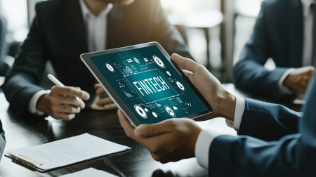 Financial Technology FinTech Innovations Illustrated Through Digital Interface and Business Analytics.