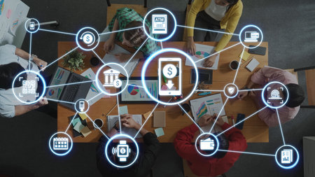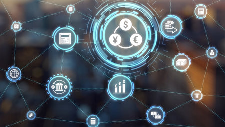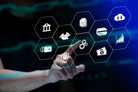 Abstract Financial Technology In online system Consisting of various online transaction icons Digital finance In the internet