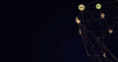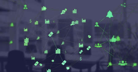 Image of network of connections with icons. Global connections business digital interface technology and networking concept digitally generated image.