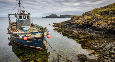 Ships are moored at the harbour in Burtonport, Donegal - Ireland