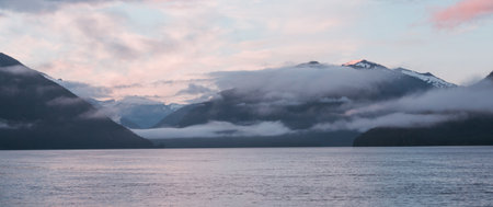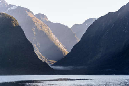 Beautiful misty mountains in Fiordland National Park in south island, New Zealand