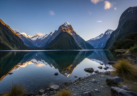 Fjord landscape. Milford Sound in New Zealand. Travel