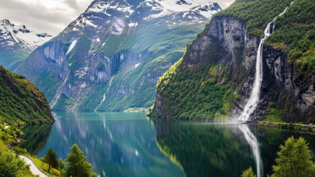 A Stunning Geirangerfjord with deep blue water and majestic mountains